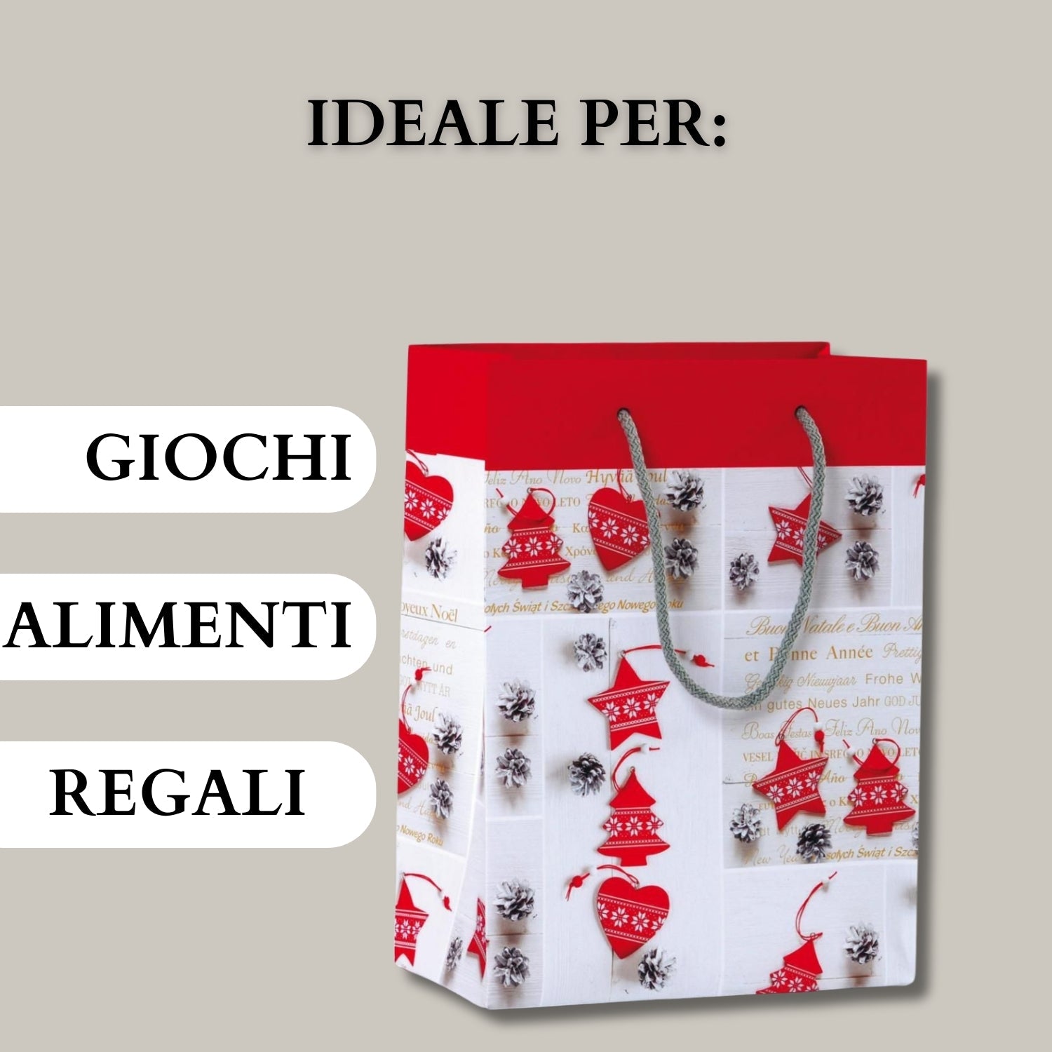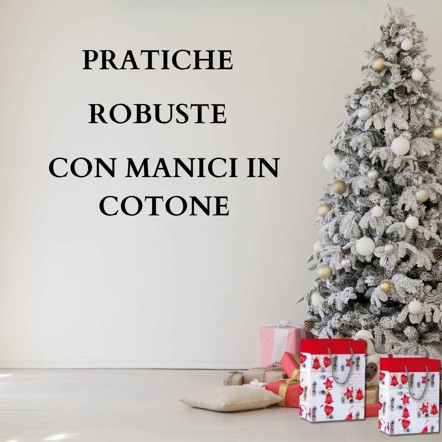 KARTOS - Sacchetti di Carta Regalo Sacchetti di Natale con Manici Buste Elegante per Regali Alimenti Dolci 12cm x 35cm x 10cm